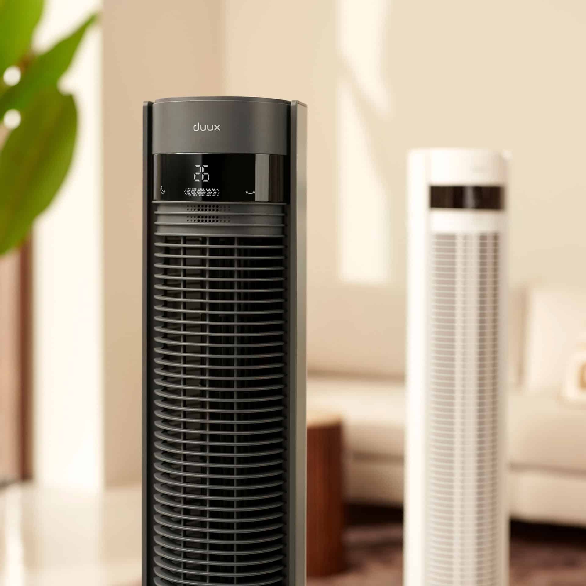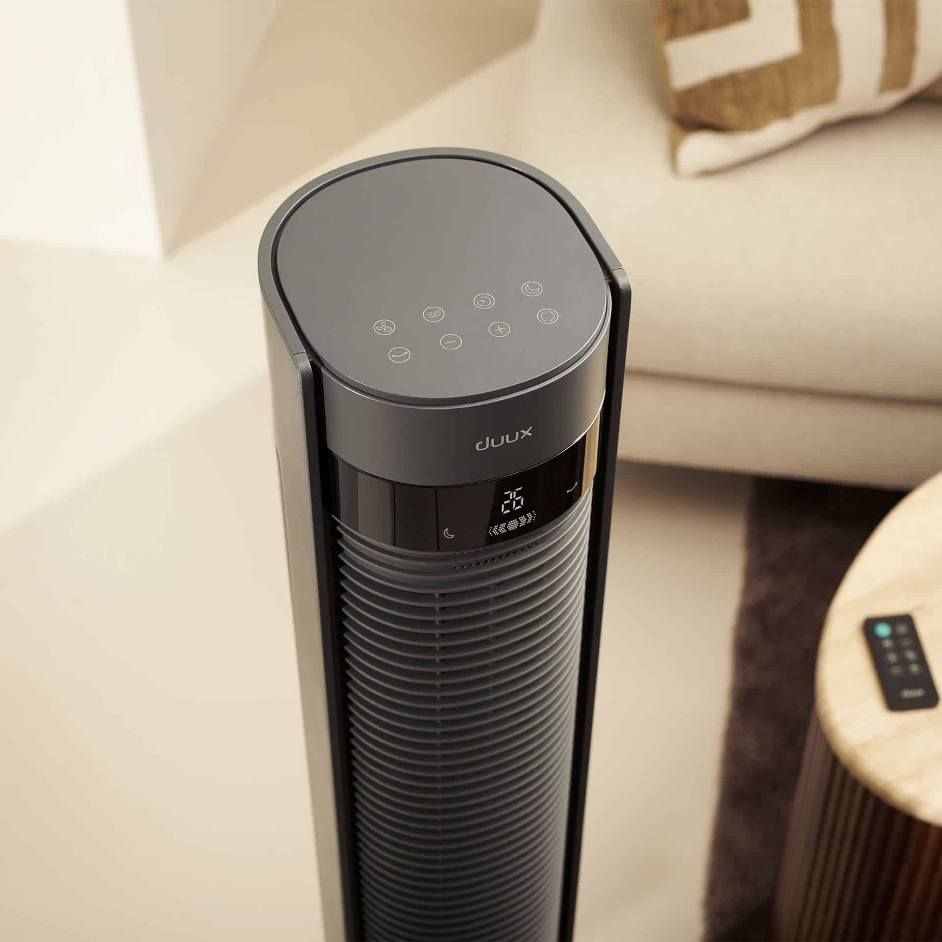Elevate sorgt nicht nur für die nötige Abkühlung, sondern trägt auch dazu bei, dass dein Zuhause so aussieht, wie du es dir wünschst: aufgeräumt und stilvoll. Die matte Oberfläche fügt sich nahtlos in jedes Interieur ein, während der Ionisator Staub und Schadstoffe aus der Luft auffängt und so für eine sauberere und frischere Luft sorgt.
