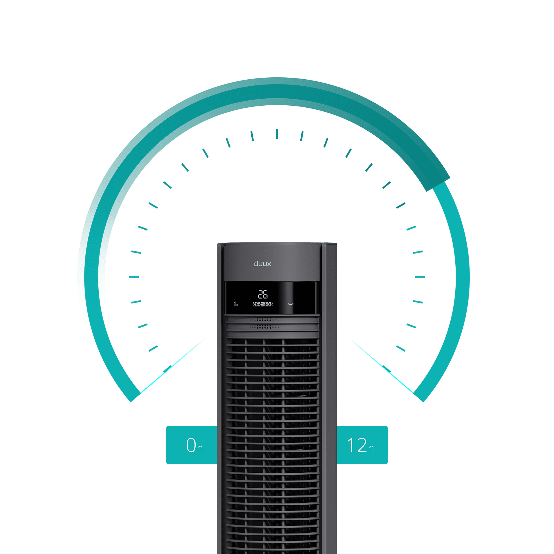 Der energieeffiziente DC-Motor verbraucht auf der niedrigen Stufe nur 4 Watt (das ist weniger als die meisten Glühbirnen!) ohne Abstriche bei der Leistung zu machen: Er kann bis zu 500 Kubikmeter Luft pro Stunde bewegen! Eine praktische Timer-Funktion für 1 bis 12 Stunden sorgt dafür, dass das Gerät nur dann eingeschaltet ist, wenn du es wirklich brauchst.