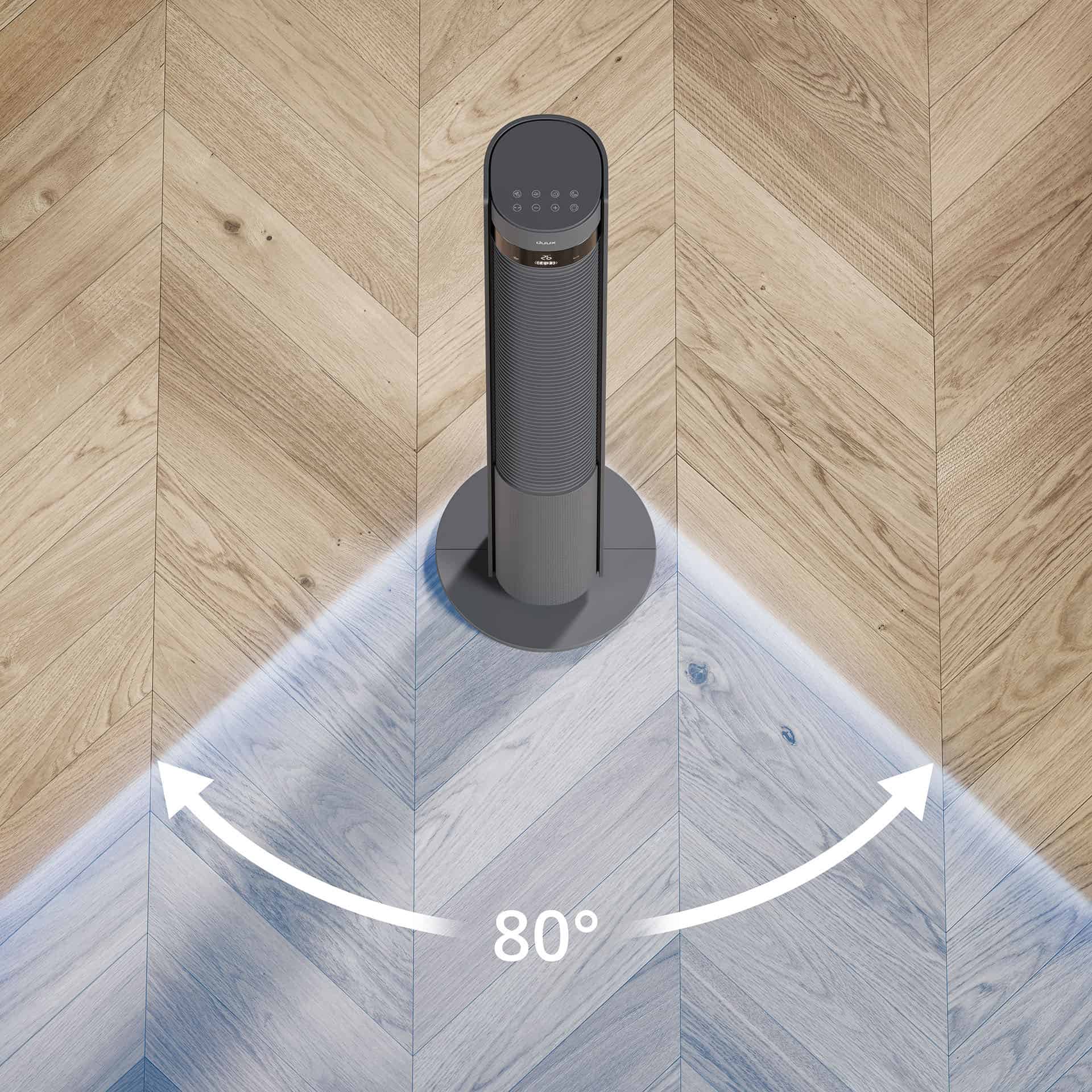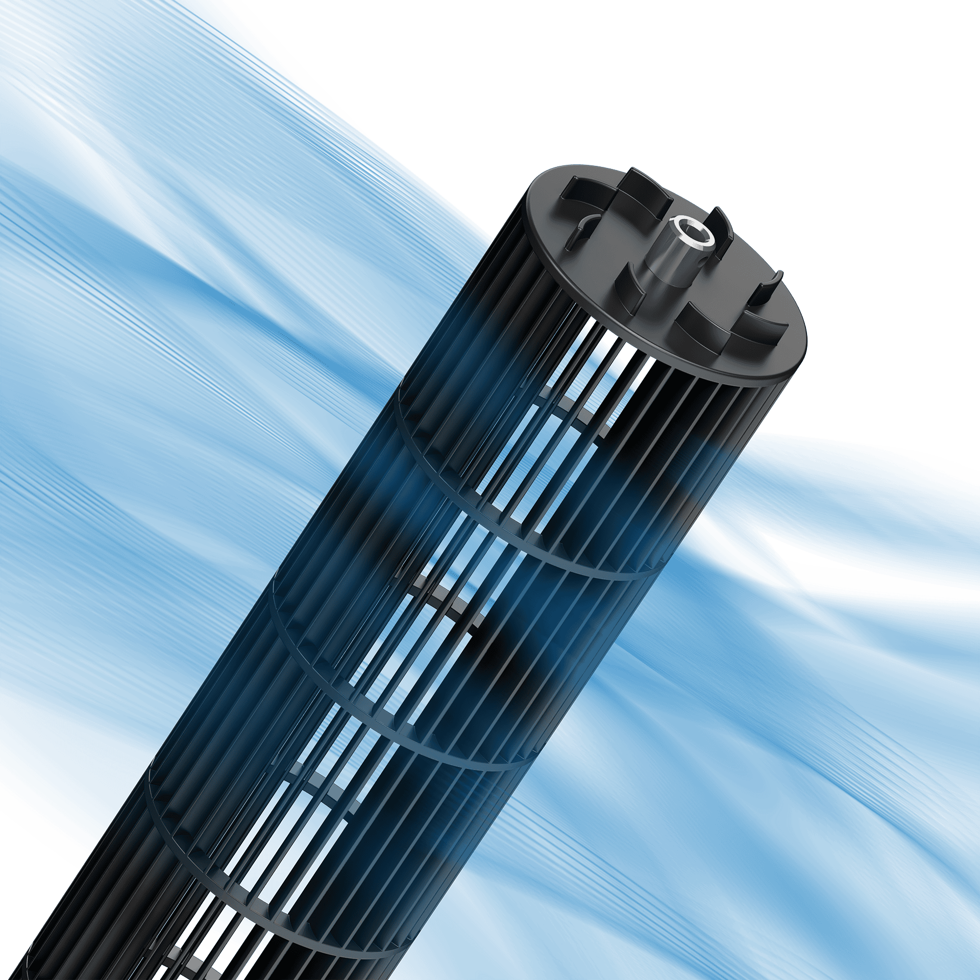 - Die breite 80°-Rotation und der starke Luftstrom sorgen dafür, dass es in jeder Ecke kühl bleibt.