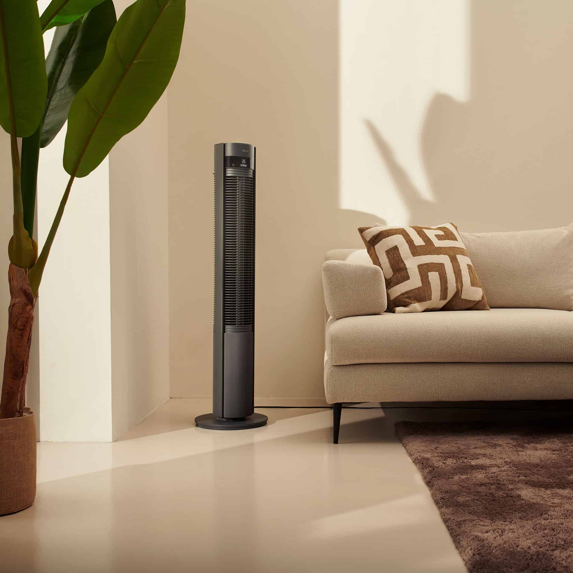 Ob kleine Wohnung oder großer Raum: Elevate passt immer perfekt. Dank seines schlanken Turms und der geringen Stellfläche (29 x 29 x 110 cm) passt er auch in die kleinsten Räume, aber mit seinem leistungsstarken Luftstrom kühlt er selbst die größten Räume.