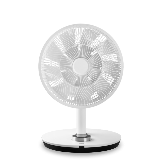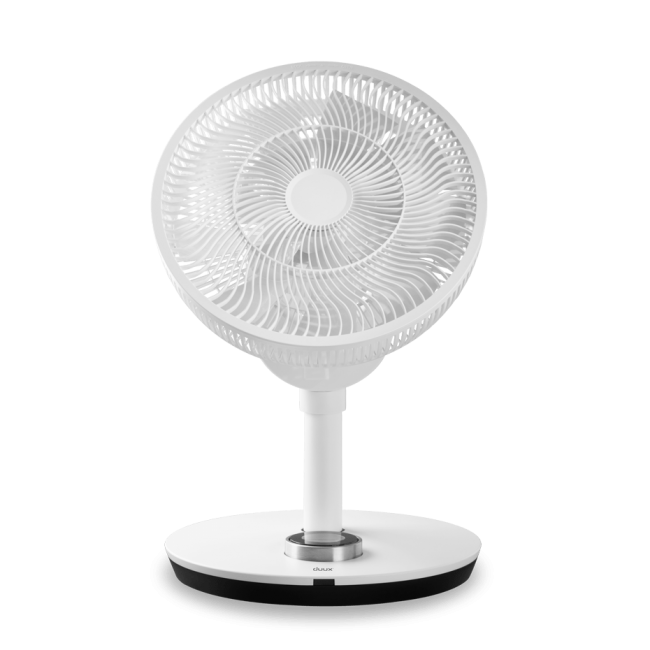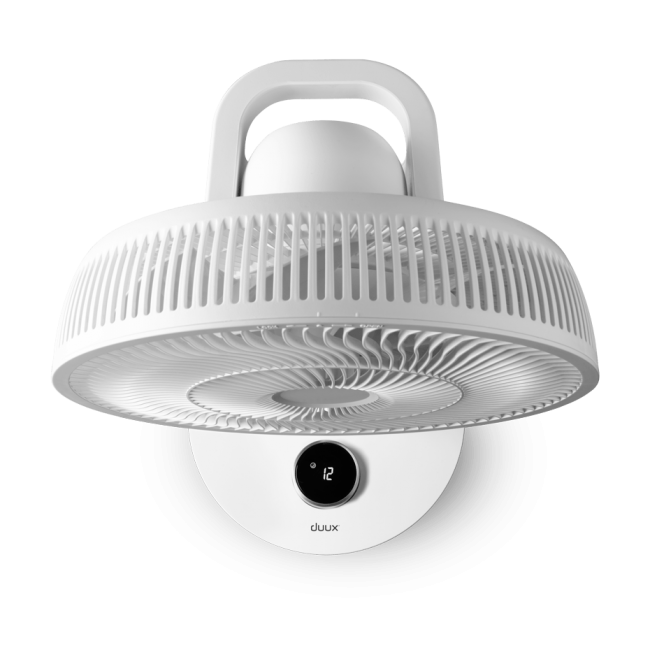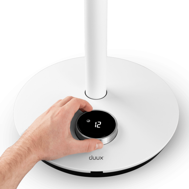 De Whisper Flex heeft tal van intuïtieve bedieningsopties, zoals de aluminium draaiknop en het hoge resolutie LCD-scherm in het midden van de interface. O ja, je hoeft niet op te staan: je bedient de Whisper Flex gewoon met de Duux smartphone app of afstandsbediening, die achterop het apparaat magnetisch vastklikt.