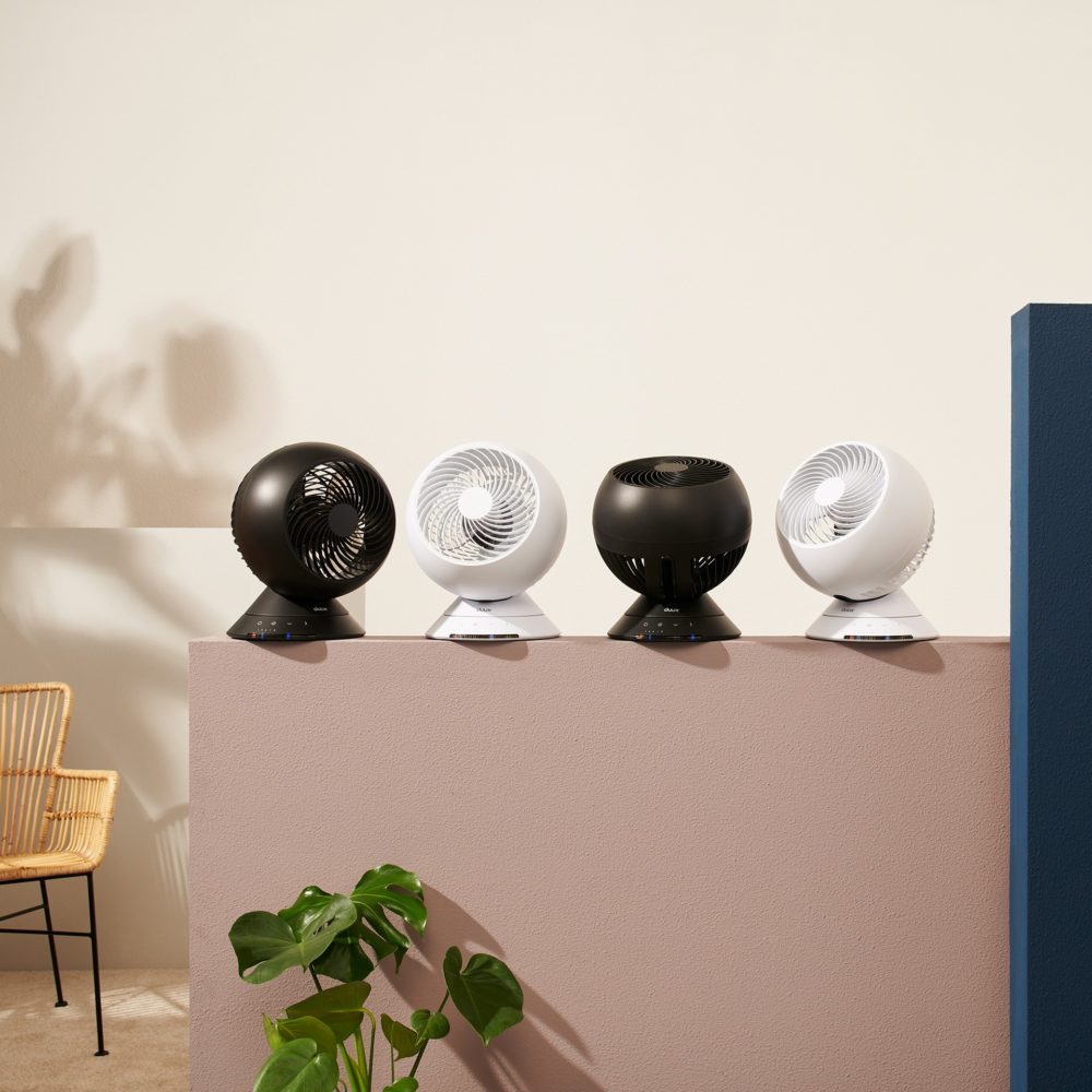 De Globe heeft drie instelbare snelheden. Je bepaalt dus zelf de blaasintensiteit. Dankzij de horizontale (90⁰) en verticale (80⁰) oscillatie kan de lucht door de hele ruimte circuleren, en met de automatische time-outmodus kun je de Globe zelfs uitzetten terwijl je slaapt.