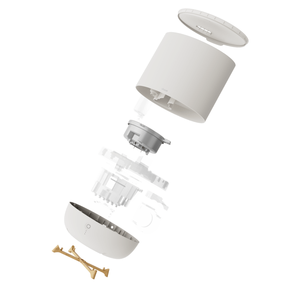 Met één druk op de knop zet je Neo aan en verander je intensiteit van de neveluistoot. Of ga voor volledige handsfree bediening met compatibele spraakassistenten zoals Alexa of Google Assistant. Je vult het apparaat eenvoudig vanaf de bovenkant bij. Dus geen gemors en gedoe met uitneembare reservoirs.