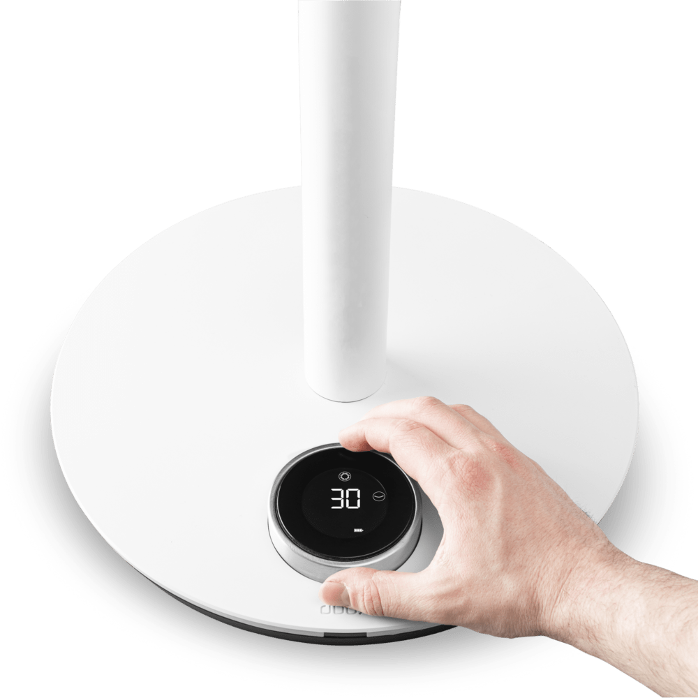 Whisper Flex Ultimate heeft intuïtieve bedieningselementen, waaronder een aan/uit-knop met aanraakbediening, een draaiknop met led-display en een afneembare afstandsbediening (voor als je geen zin hebt om uit bed te komen!). Samen met de gratis Duux-smartphone-app kun je de ventilator ook bedienen met je telefoon of met spraakassistenten zoals Amazon Alexa/Google Assistant, zodat je kamer lekker koel is als je thuiskomt.