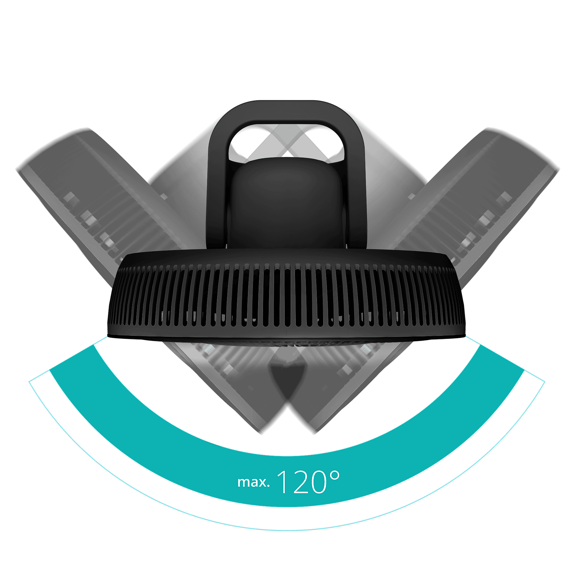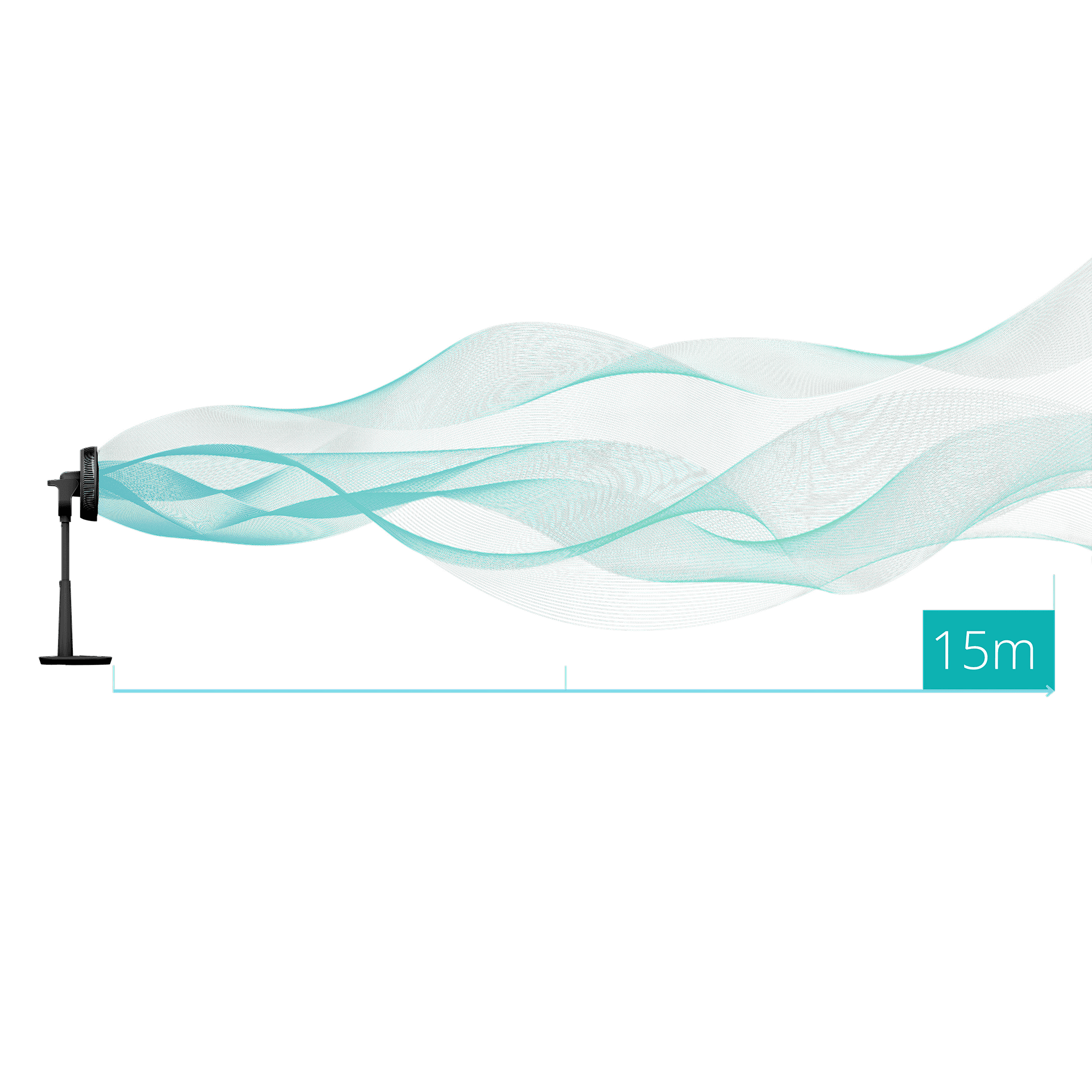 Laat je niet misleiden door zijn elegante uiterlijk, want met zijn enorme power zorgt deze krachtpatser met gemak voor een verfrissende wind tot wel 15 meter ver. Ideaal voor het verkoelen van grote ruimtes. Het geheim zit in de slimme structuur van dubbele ventilatorbladen – wat Whisper 3 tot wel 7x krachtiger maakt dan traditionele ventilatoren.