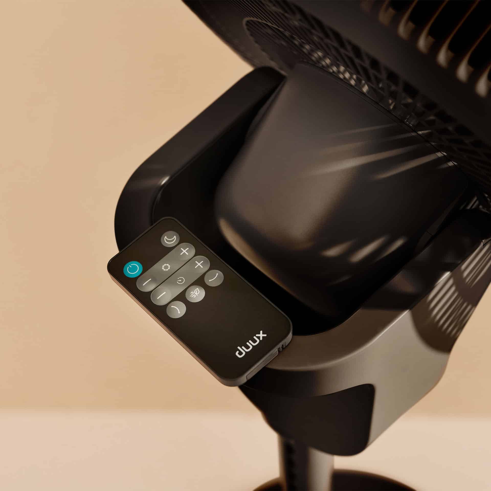 En bedienen? Dat doe je via het intuïtieve LED-display of  lekker vanuit je comfortabele stoel (of bed) dankzij de handige afstandsbediening. Kies jouw favoriete stand: één snelheid of misschien de natural wind modus, waardoor je het gevoel krijgt alsof je wordt verfrist door een natuurlijk duinbriesje. Nadat je jouw favoriete stand hebt ingesteld, klik je de afstandsbediening eenvoudig op de magnetische houder – zo raak je hem nooit meer kwijt.